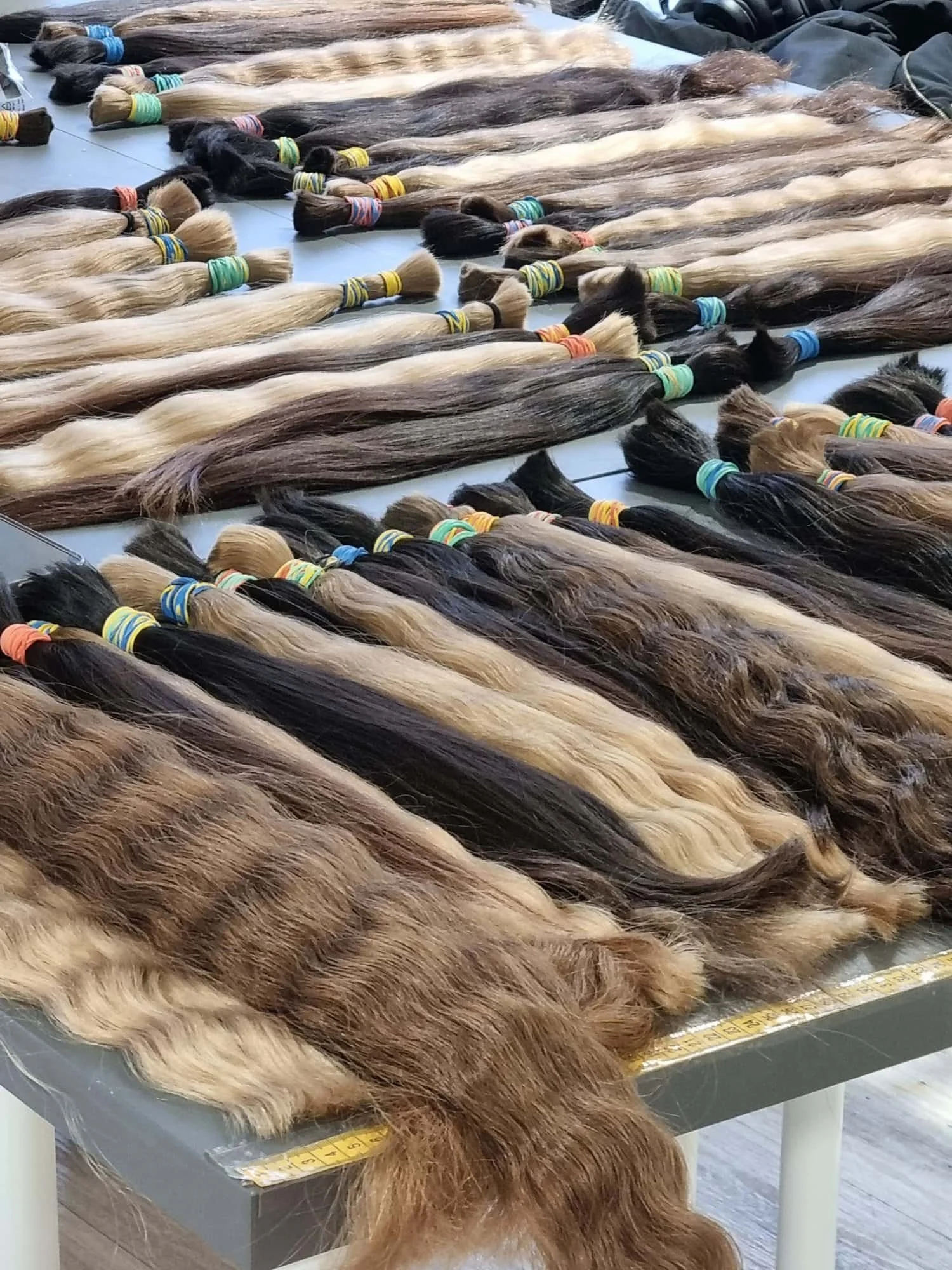 We personally hand-source each single donor ponytail of hair, ensuring the highest standards of quality, texture, and consistency. This meticulous attention to detail guarantees that your hair extensions will blend seamlessly with your natural hair for a flawless, long-lasting result.